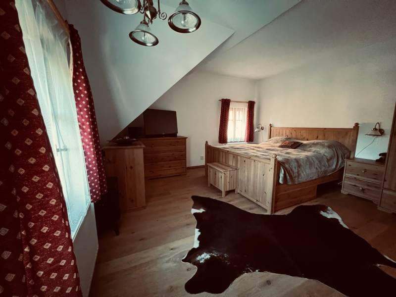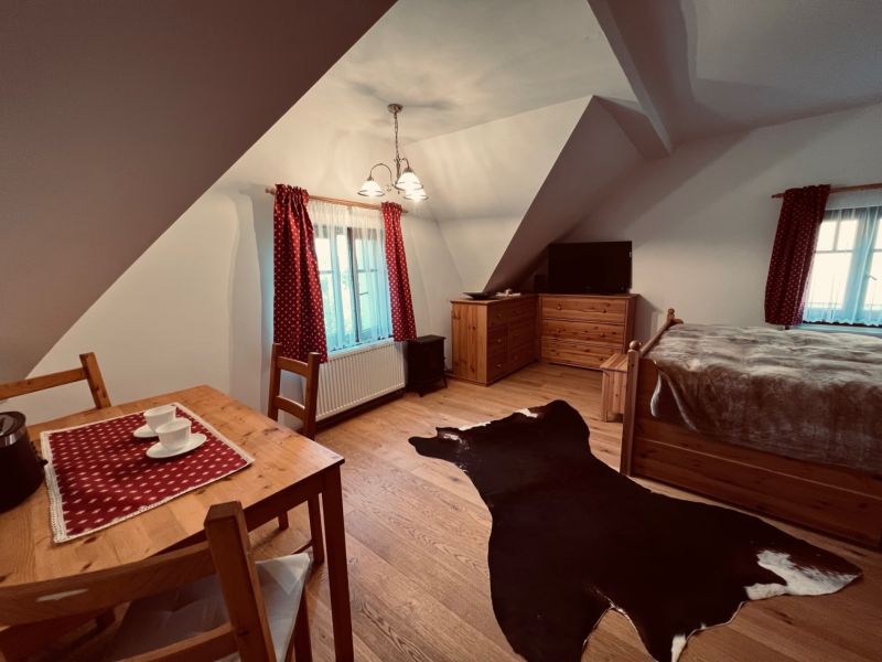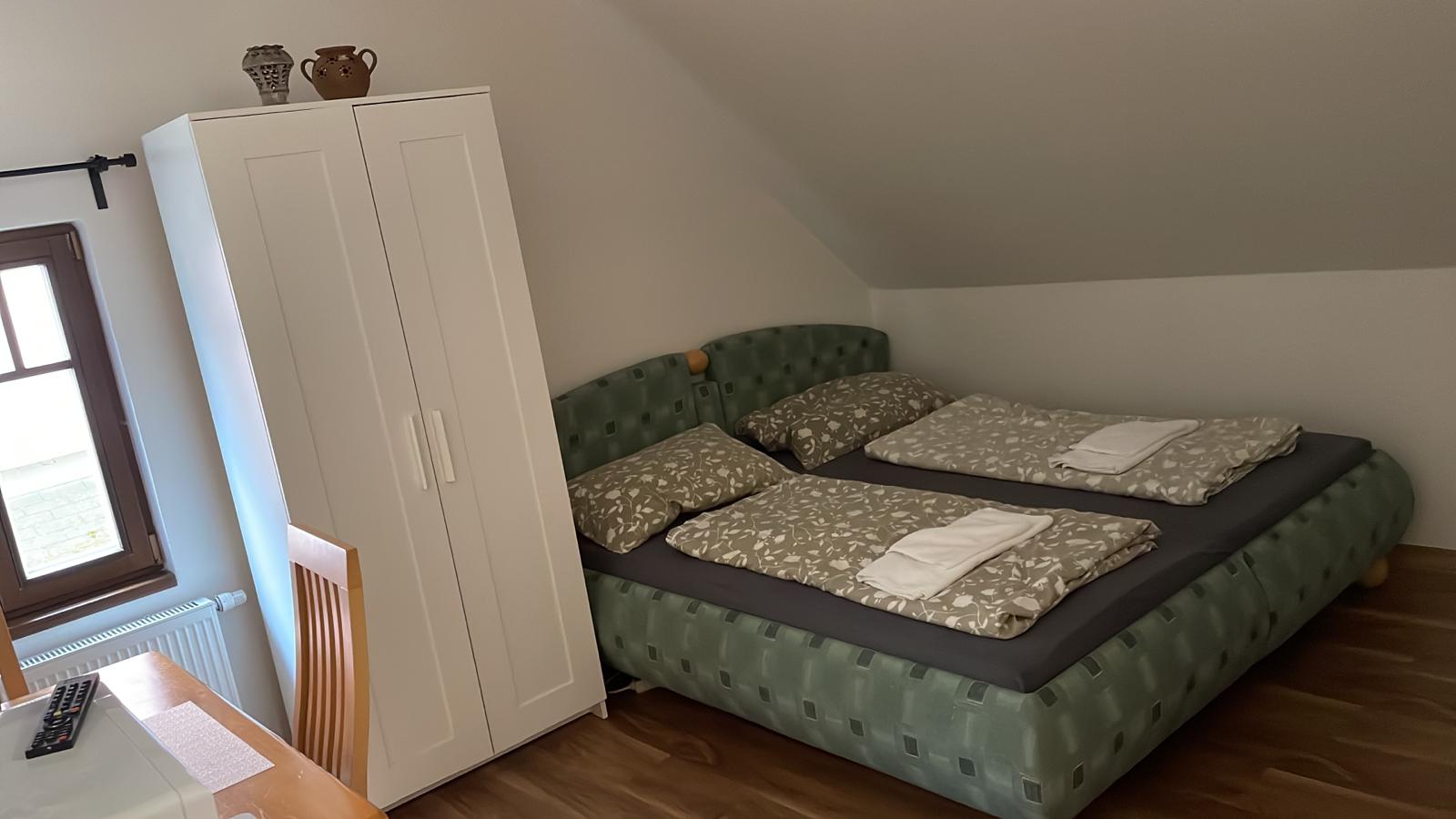 Pokoj s vířivou vanou, manželská postel + 4 lůžka v podkroví